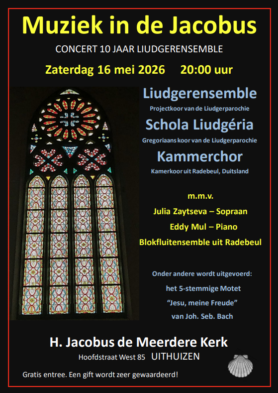 Op zaterdag 16 mei 2026 viert het Liudgerensemble haar 10-jarig jubileum in de serie “Muziek in de Jacobus” te Uithuizen.