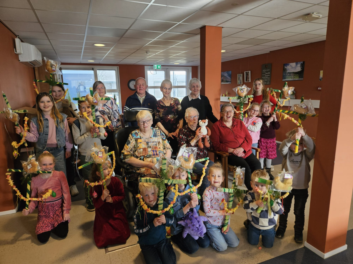 Samen werden de Palmpasenstokken versierd in een warme en feestelijke sfeer. De ontmoeting tussen jong en oud is elk jaar weer een bijzonder moment van verbondenheid binnen de gemeente.