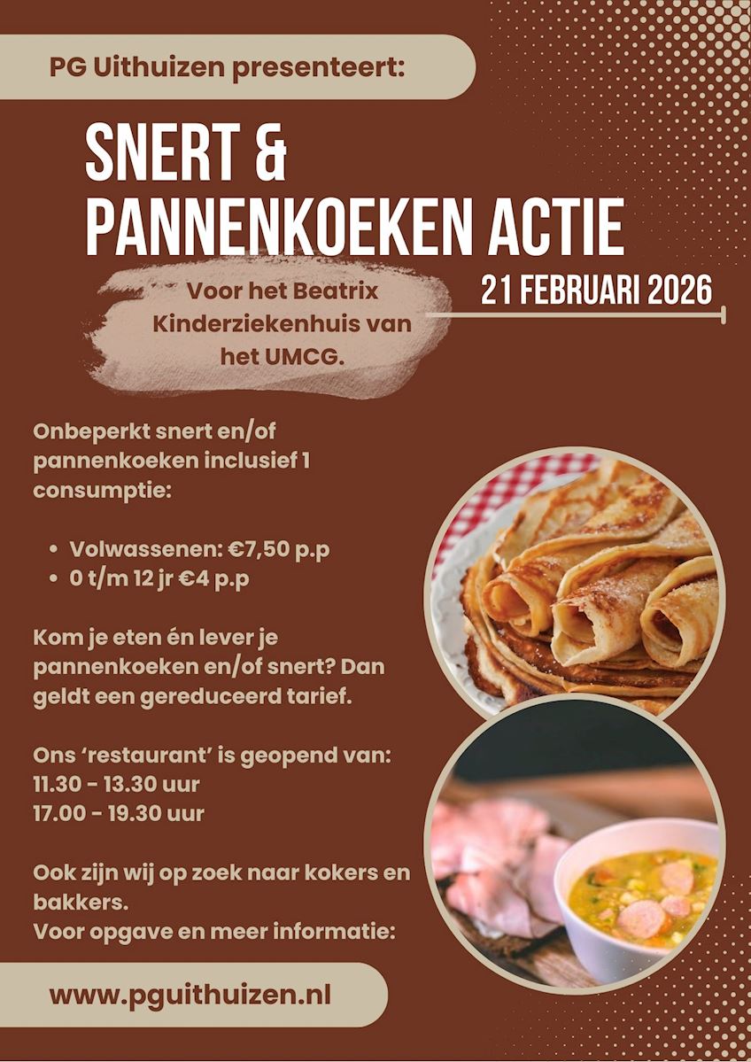 Na het succes van vorig jaar organiseren we ook dit jaar weer onze Snert & Pannenkoeken Actie! Dit jaar zetten we ons in voor Beatrix Kinderziekenhuis van het UMCG.